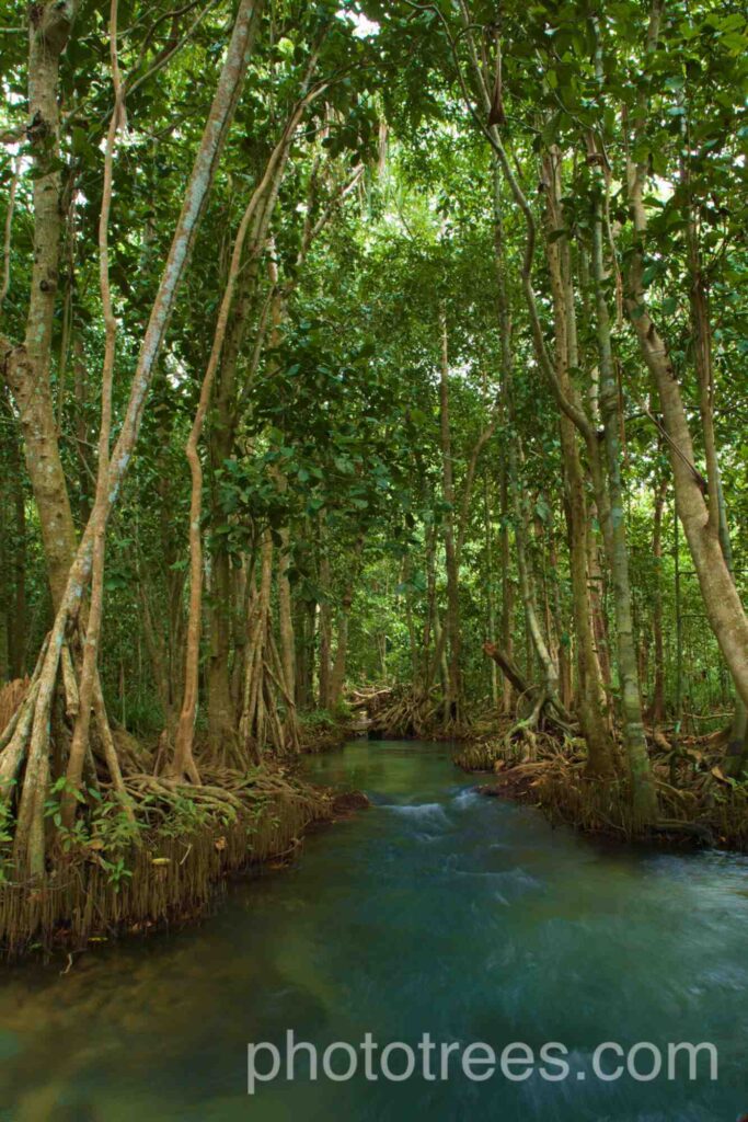 In “Pa Phru Tha Pom Khlong Song Nam” (“Two Water Canal Swamp Forest”), where freshwater and saltwater meet, there is an enchanting ecosystem based on mangrove forest with intricate roots and crystal clear water (Mixed tree species; Krabi, Thailand)